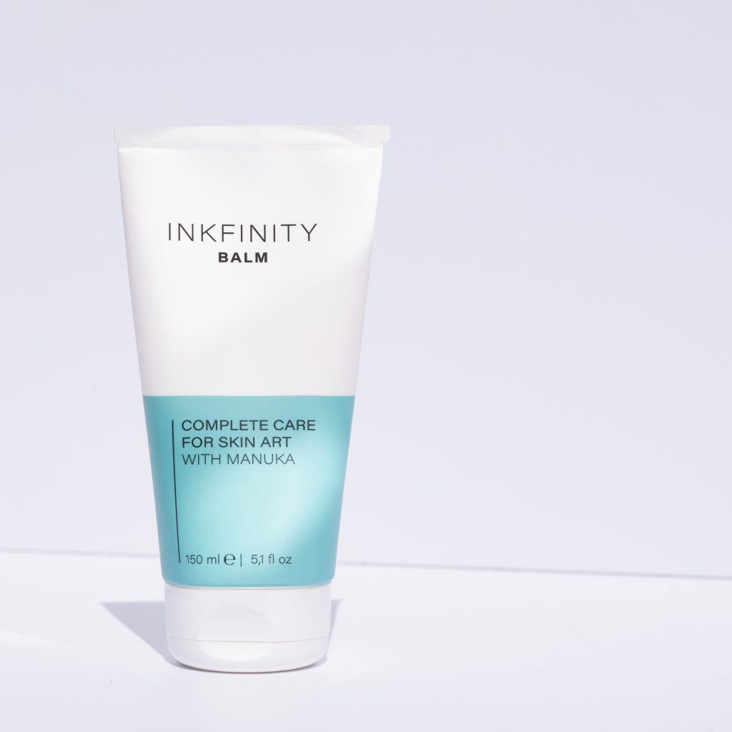 Inkfinity Balm versorgt frisch tätowierte Haut optimal mit Feuchtigkeit und fördert die Heilung.